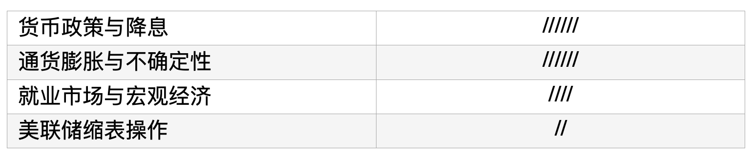 政策声明中删除“实现就业和通胀目标的风险基本平衡”并不意味着任何一项风险偏高,这句话失去了用处就被删除了,不代表某种信号。之前强调就业和通胀风险平衡很重要是因为那时接近降息。现在更重要的风险信息是在经济预测中委员会成员几乎一致认为对经济成长、就业和通胀的风险显著提高,而不是关于风险是否平衡的问题。金融条件很重要是因为它是货币政策的主要传导机制。但美联储关注的是总体金融条件显著变化而且持续一段时间影响宏观经济活动,而不是股票、债券或者商品市场具体变化。目前实际经济硬数据总体是好的,调研报告软信息显示市场担心和经济下行风险。美联储不忽略这些软信息但也不会提早焦虑,我们集中关注硬数据,没看到什么让人担心的情况。
